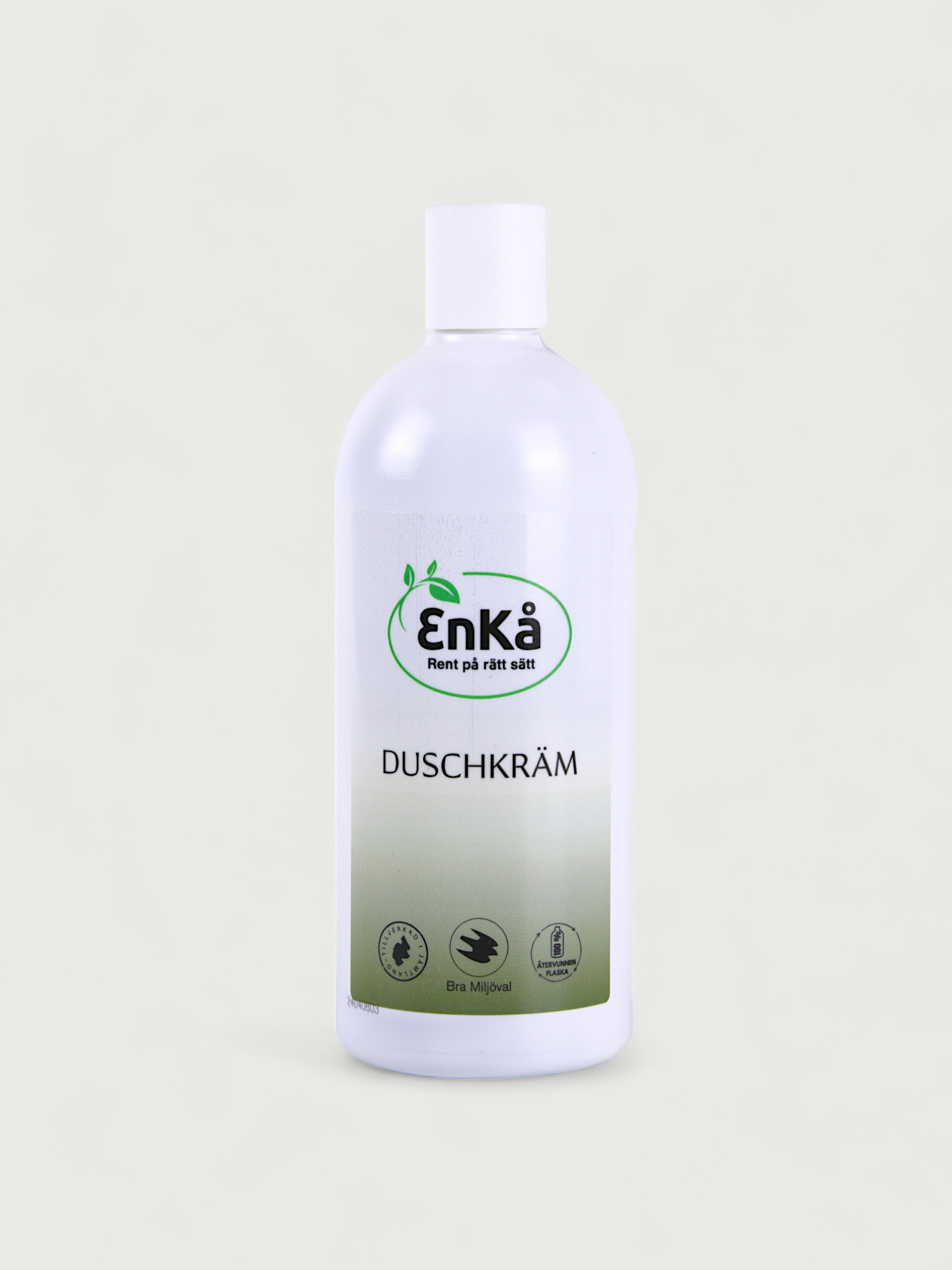 EnKå Duschkräm är en skön och mild produkt, som innehåller Bio Gen Active®, ett 100 % naturligt hälso- och miljöoptimerat ämne baserat på vassle. Produktens hudnära pH (5,3) samt mjölksyran och mjölkproteinerna i Bio Gen Active® gör den skonsam för huden.